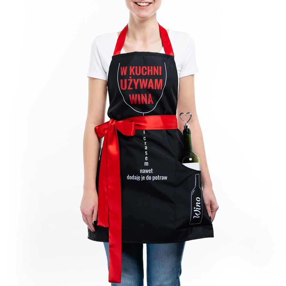Jeśli znasz damę, która o gotowaniu myśli podobnie, a do tego ma poczucie humoru, podaruj jej fartuszek z napisem: W kuchni używam wina. Czasami nawet dodaję je do potraw.