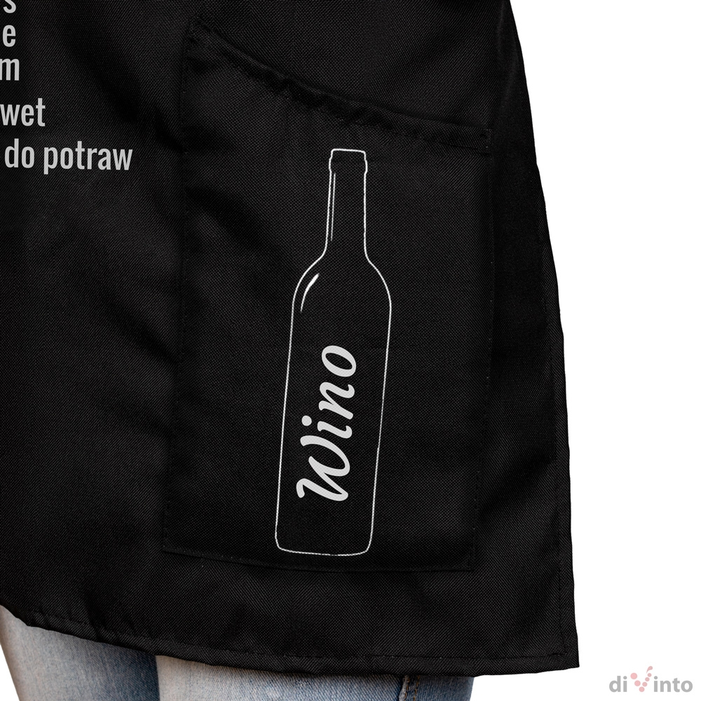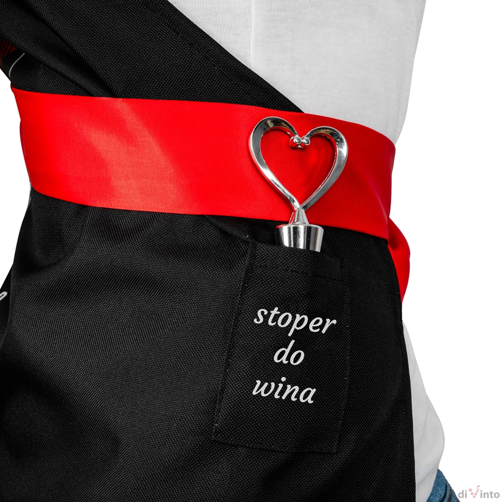 Fartuszek dla gotującej kobiety to kuchenny fartuch z kieszenią na wino oraz stoperem do wina w zestawie.