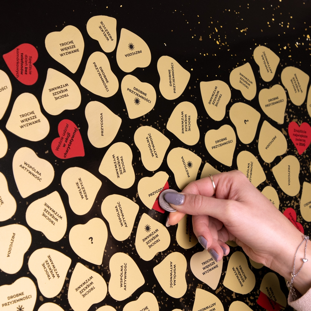 Zdrapka Przeżyć dla Pary to coś więcej niż przedmiot – to plakat do zdrapywania, który zawiera ponad 100 propozycji przeżyć, dzięki którym wspólne chwile staną się niezapomniane, a w związku nie będzie miejsca na nudę.