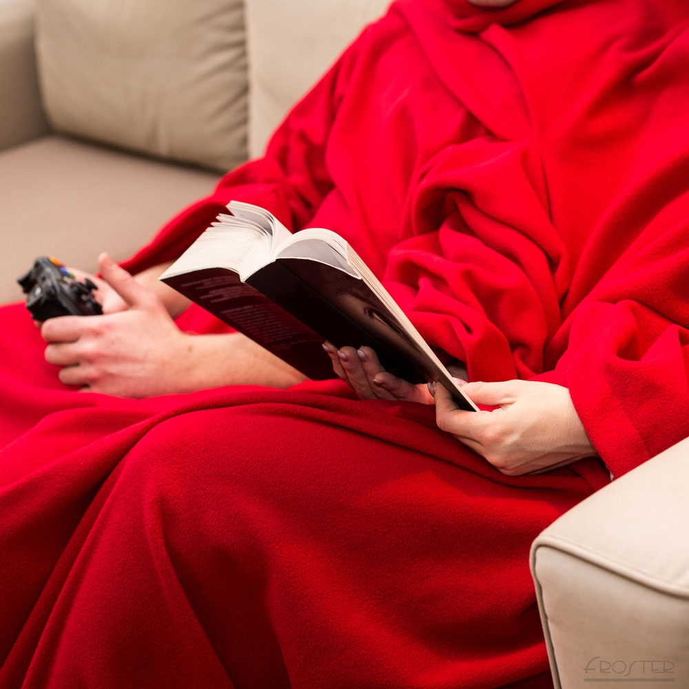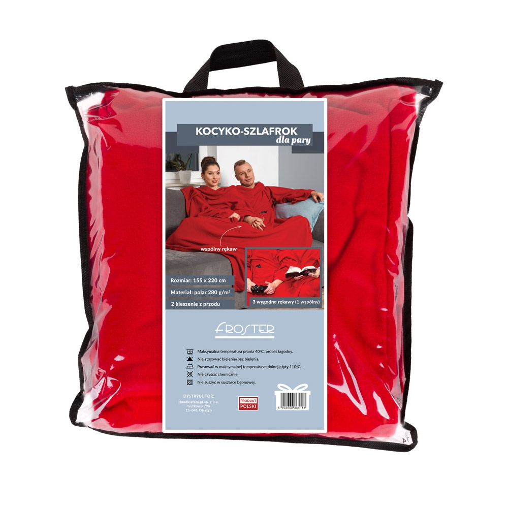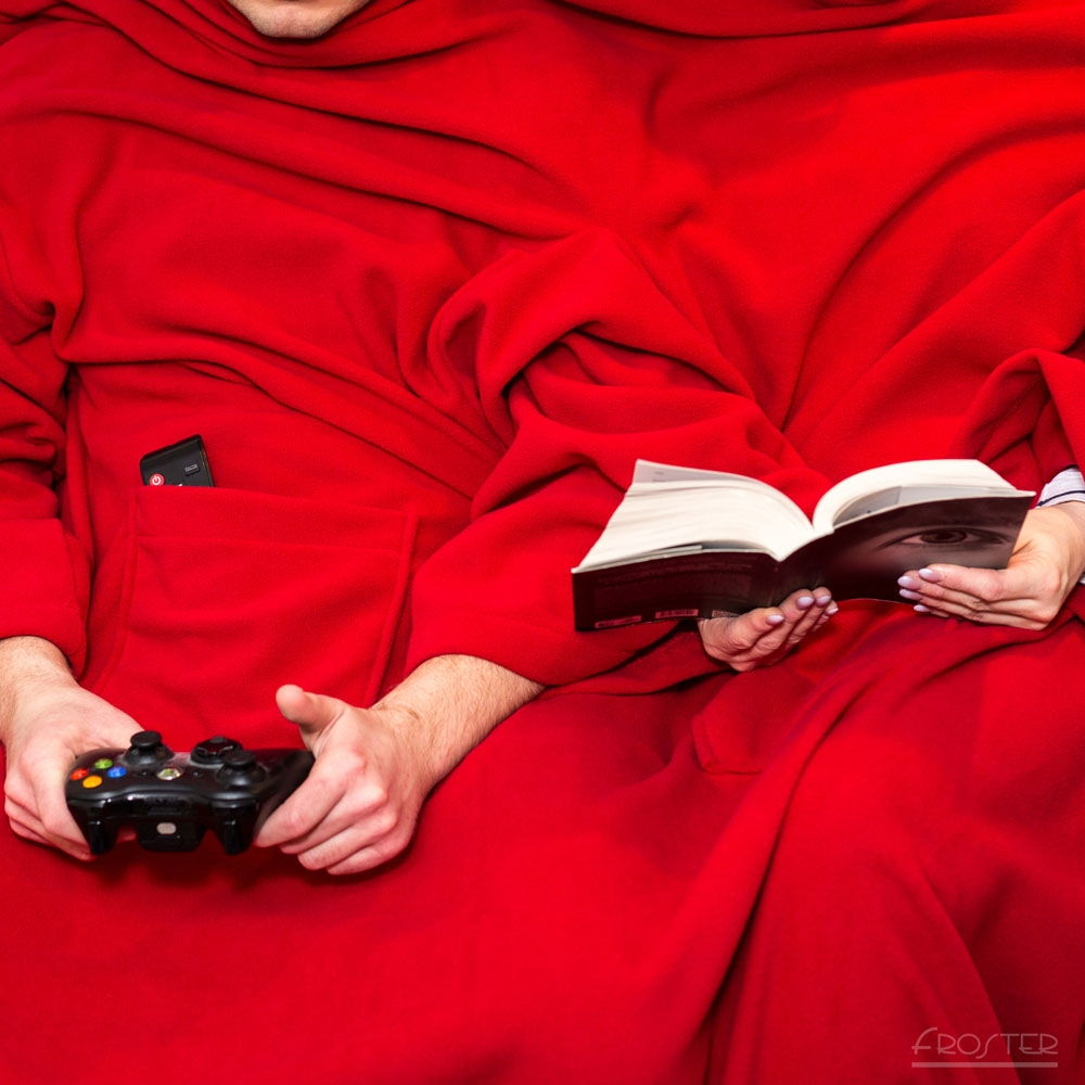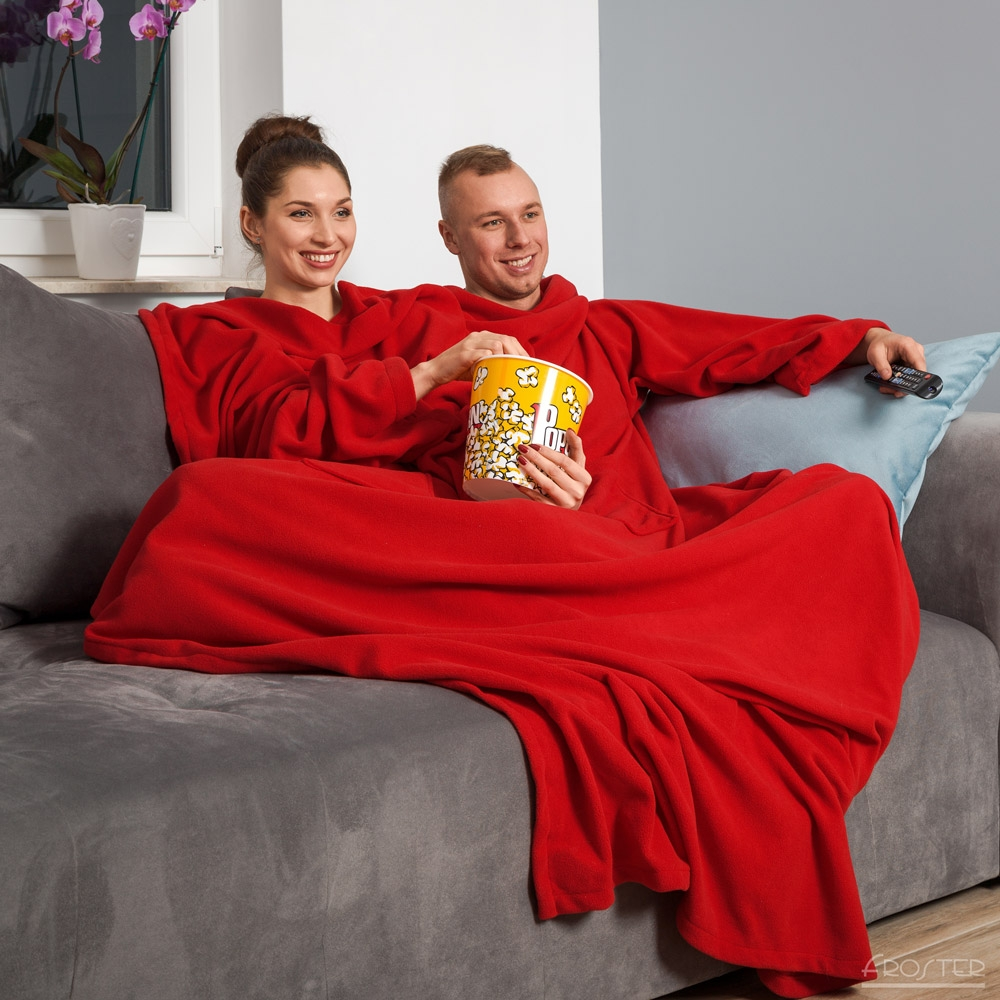 Ciepły kocyk z wygodnymi rękawami dla dwojga.
