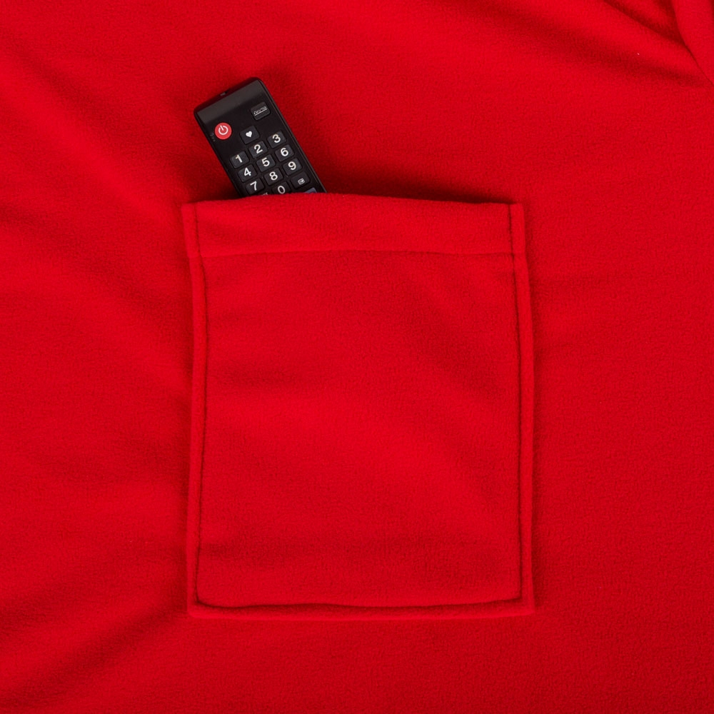 Dodatkowe dwie wygodne kieszonki z przodu pomieszczą w sobie pilota, książkę i słodycze. Kocyka można z powodzeniem używać zarówno do wspólnego czytania książek, jak i do gry na konsoli.