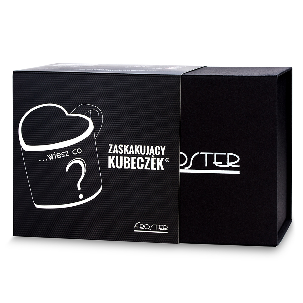 Zaskakujący Kubeczek Deluxe to termoaktywny kubek w kształcie serca z ukrytą wiadomością, zapakowany w eleganckie pudełko prezentowe.