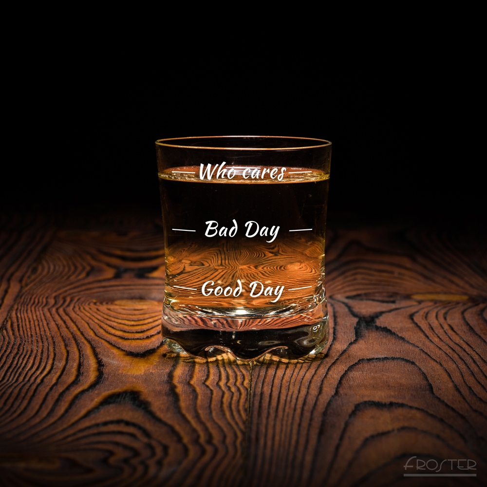 - Szklanka i kieliszek wskazują trzy poziomy napełnienia: Good Day (Udany dzień), Bad Day (Zły dzień) oraz Who cares (Kto by się przejmował)